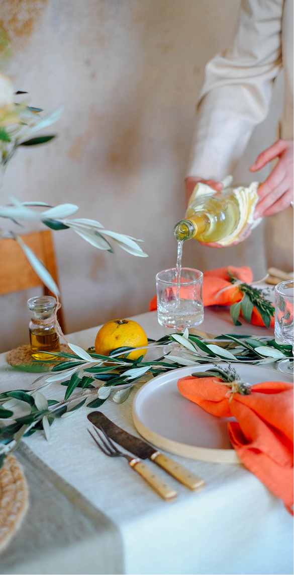 Lniane serwetki w kolorze Peach pięknie przełamują pastelowy kolor obrusu, dodając całości głębi i subtelnego kontrastu. To detal, który nie dominuje, ale sprawia, że aranżacja staje się bardziej dopracowana i „pełna”.